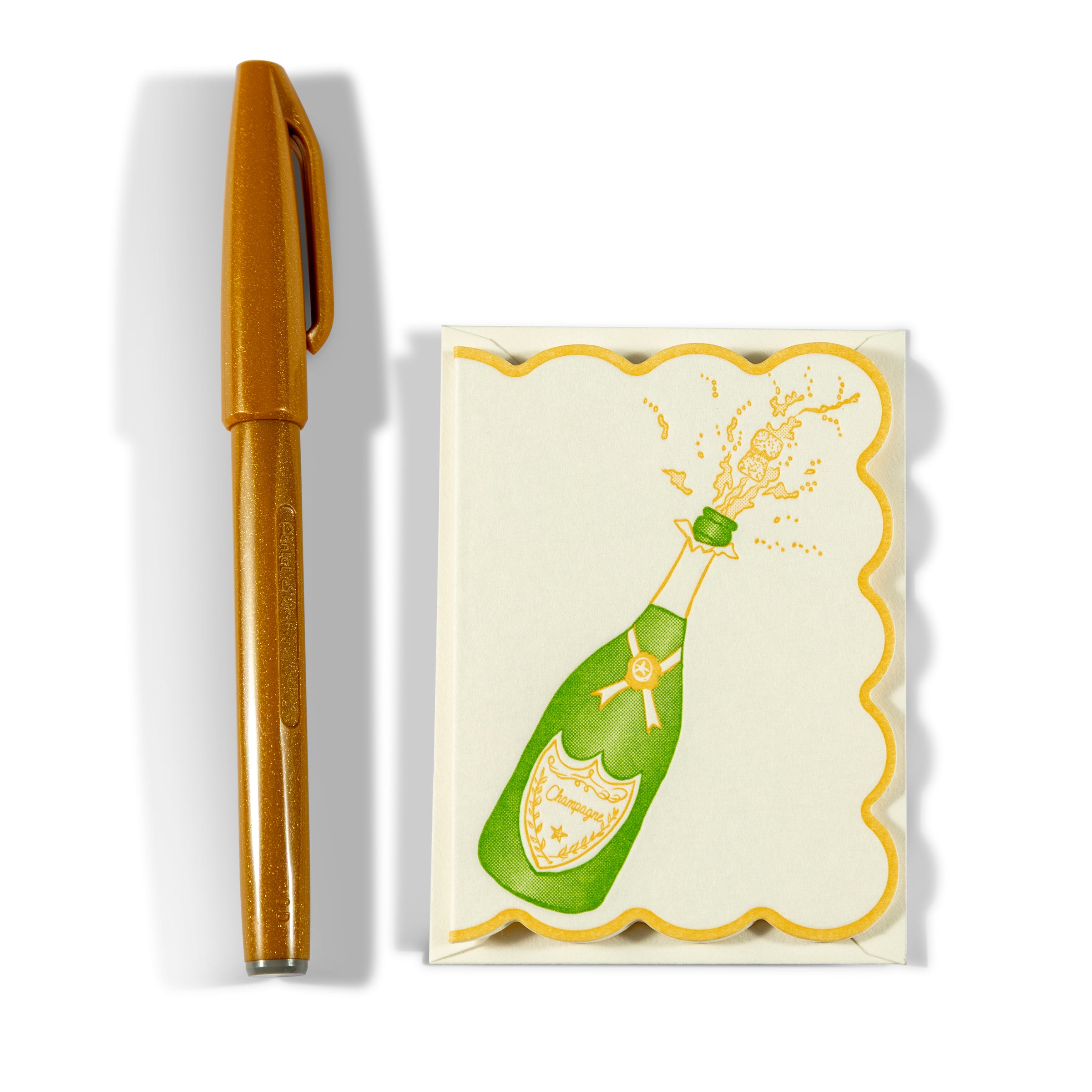 A bubbly little card for big celebrations.Our mini enclosure cards are the perfect finishing touch to any gift or toast-worthy moment. Whether you’re celebrating a birthday, engagement, promotion, or just because, this tiny card brings the cheer. Each one comes with a petite envelope (2.625” x 3.625”) and is just the right size for a short but meaningful note. This design features a poppin’ champagne bottle, ready to mark the moment with sparkle.