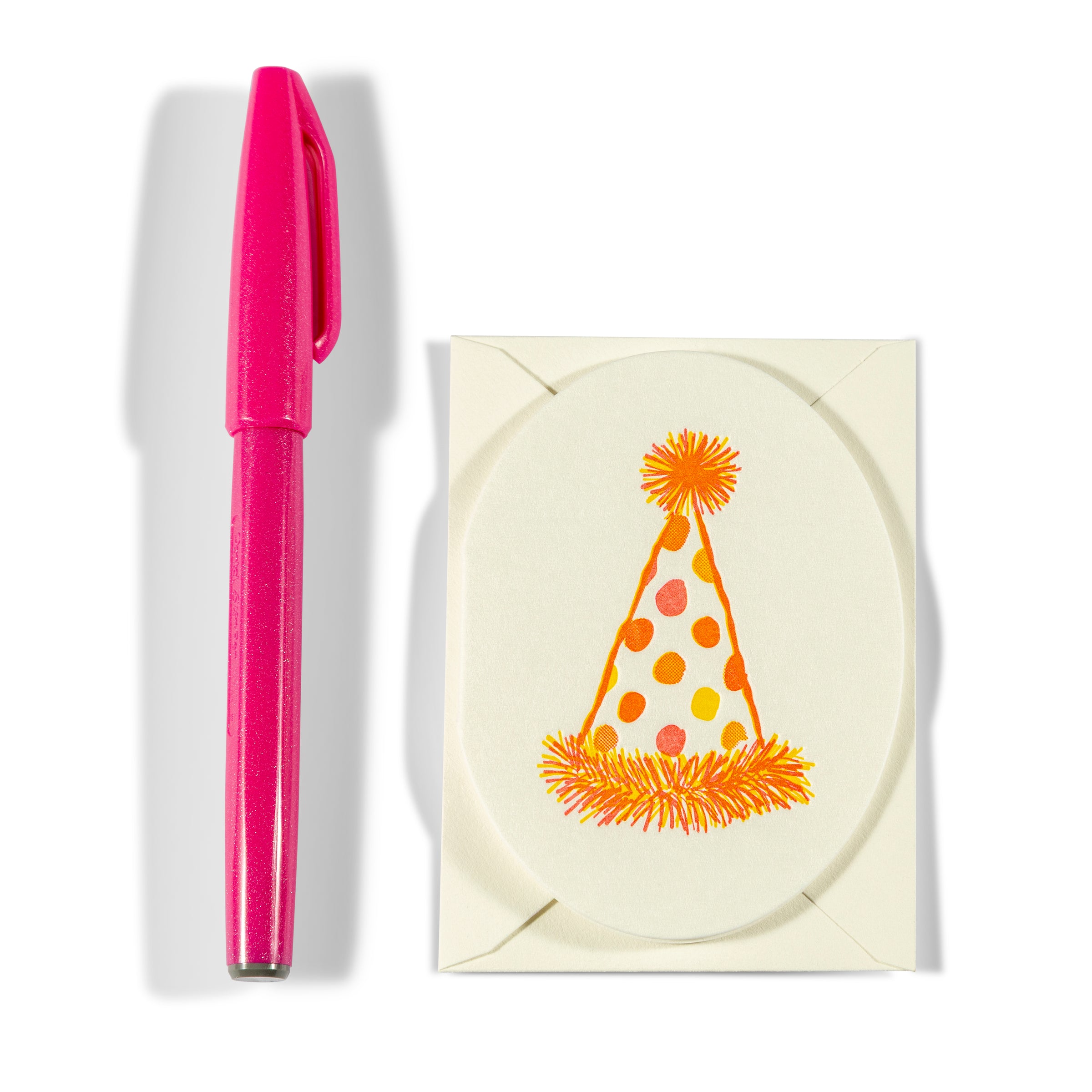 A little card that makes a big impression.Our mini enclosure cards are the perfect way to add a pop of celebration to any birthday, gift bag, or party favor. Each card comes with a matching envelope (2.625” x 3.625”) and is too small to mail, but just right for hand-delivering joy. This one features a bright party hat decked out in playful polka dots and festive fringe—ready to kick off the fun and bring on the smiles.