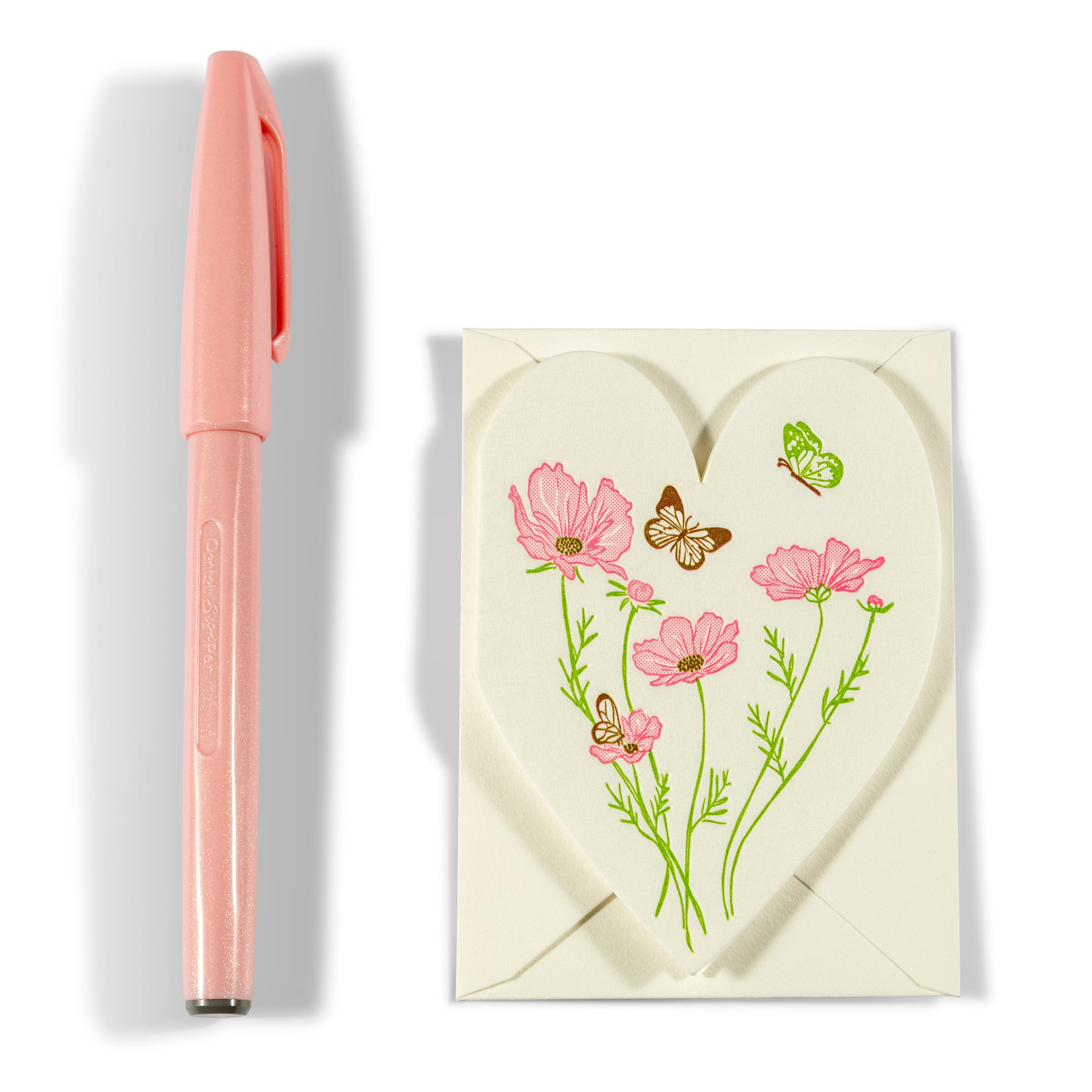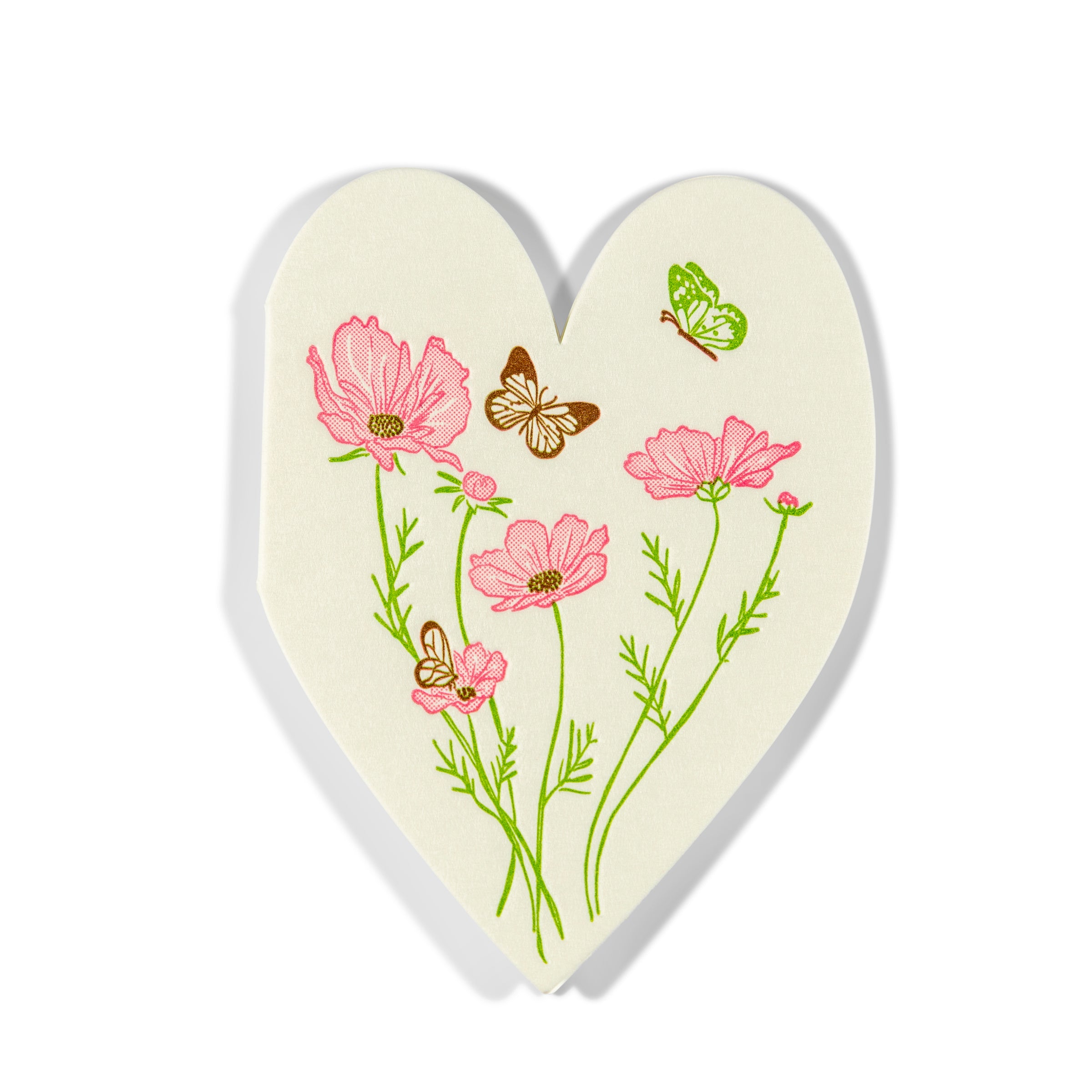 A little card with a lot of heart.Our mini enclosure cards are a sweet way to add a thoughtful touch—perfect for tucking into gifts, bouquets, lunch boxes, or surprise notes. Each one comes with a petite envelope (2.625” x 3.625”) and is just the right size for a quick thank-you, love note, or gentle reminder that someone’s on your mind. This heart-shaped design features delicate wildflowers and fluttering butterflies in vibrant pinks and greens—soft, cheerful, and full of charm.