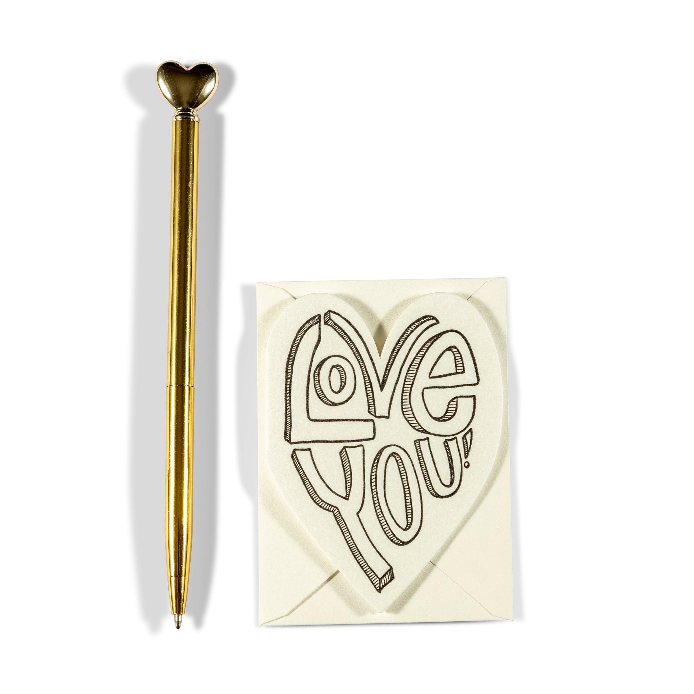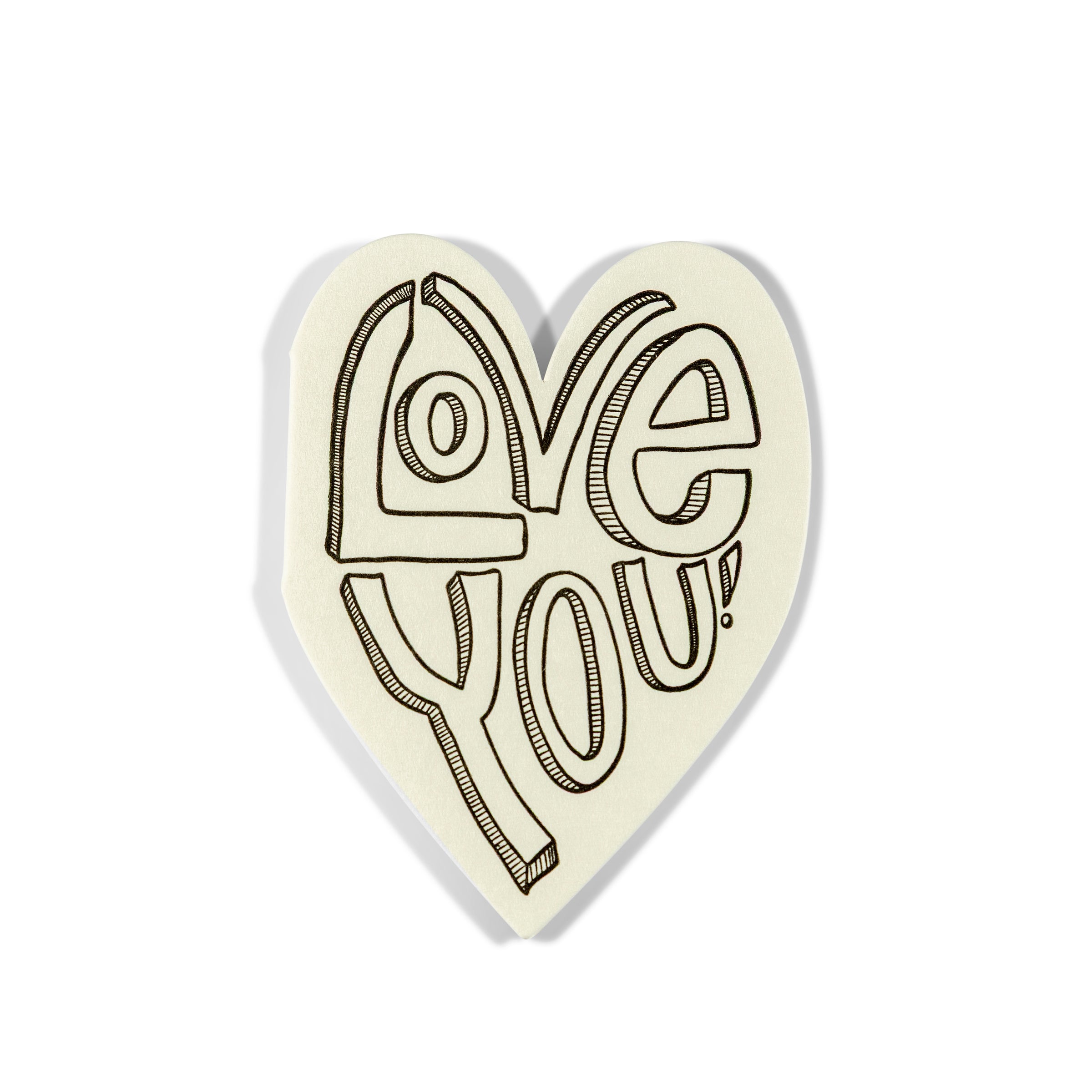 A bold little way to say a lot.This heart-shaped mini card features a hand-drawn “Love You!” message in playful black lettering—perfect for slipping into a lunchbox, leaving on a pillow, or attaching to a thoughtful gift. It’s a sweet surprise for Valentine’s Day, anniversaries, or just because. Each card comes with a petite envelope (2.625” x 3.625”) and is small enough to tuck into anything—but too small to mail.