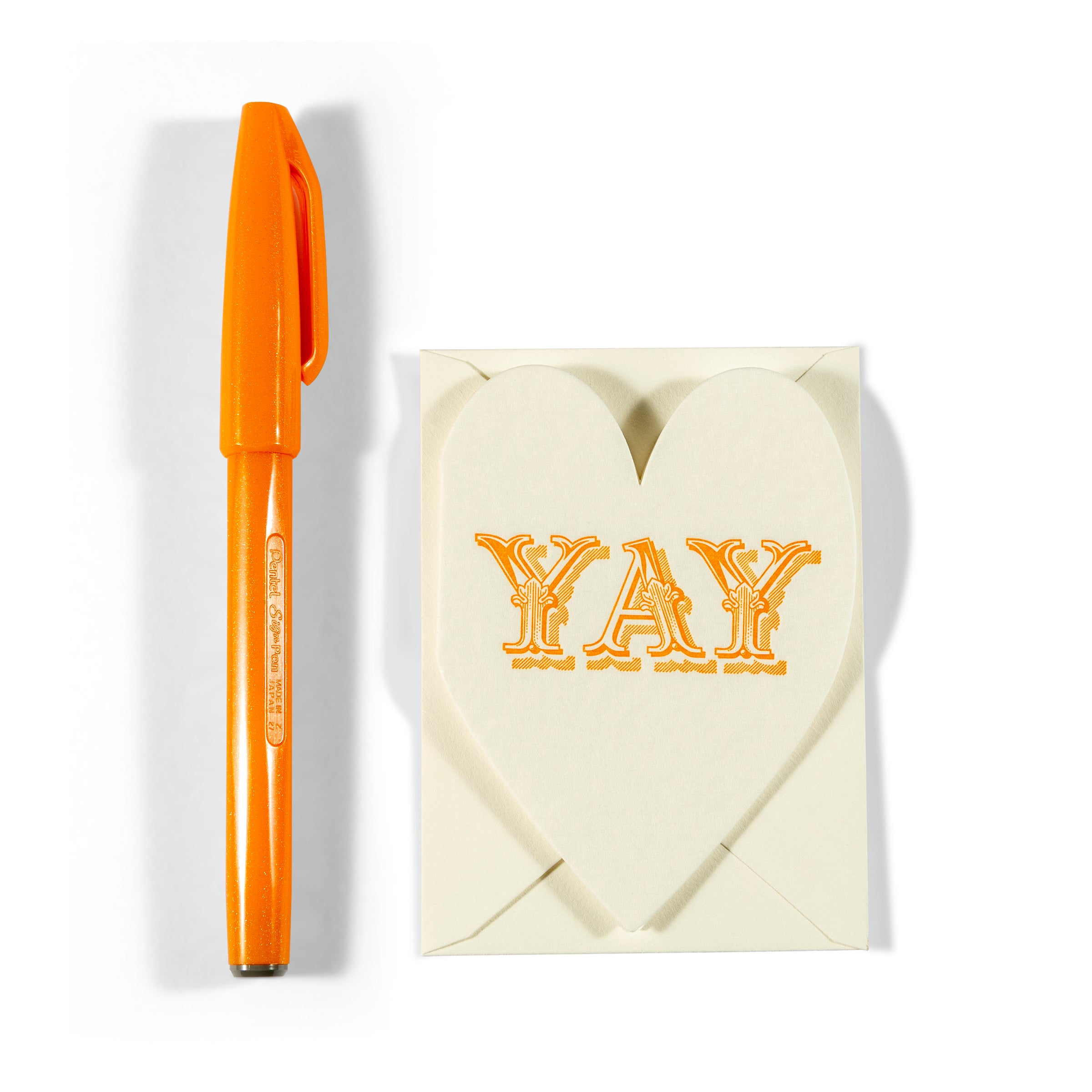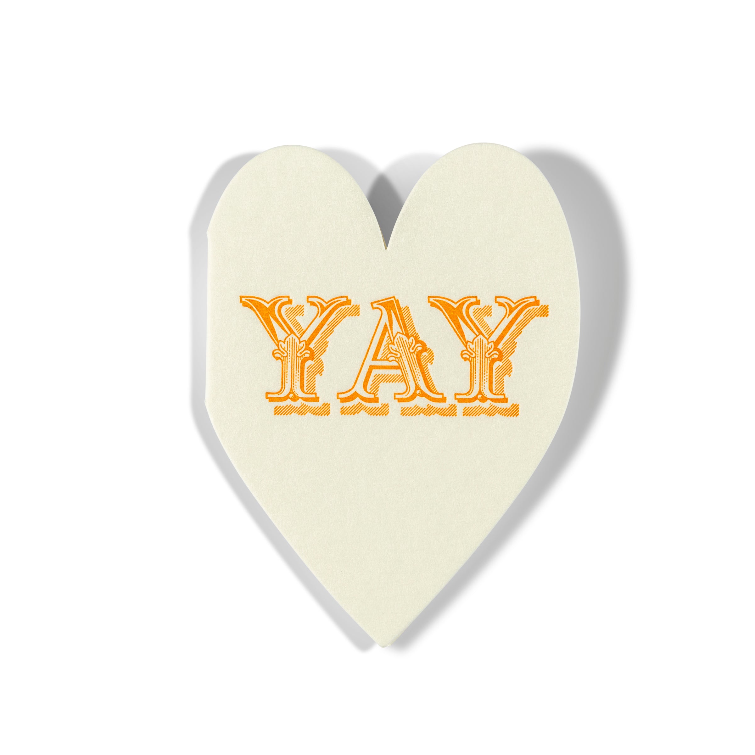 When words aren’t enough—just say YAY!Our mini enclosure cards are tiny celebrations in themselves, perfect for tucking into a gift, bouquet, or slipped into someone’s hand for a surprise smile. Whether it’s a new job, new baby, graduation, engagement, or just because—you can never go wrong with a good ol' fashioned “YAY!” This heart-shaped card features bold, celebratory lettering in a joyful orange.
